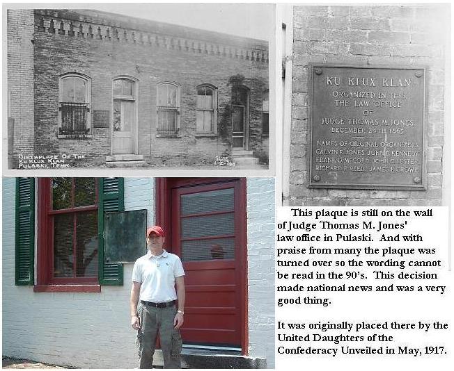 The plaque, which can't be seen (I prefer the smooth side, myself) today, reads "Ku Klux Klan organized in this, the law office of Judge Thomas M. Jones, Dec. 24, 1865" and then listes the names of the six founding members.